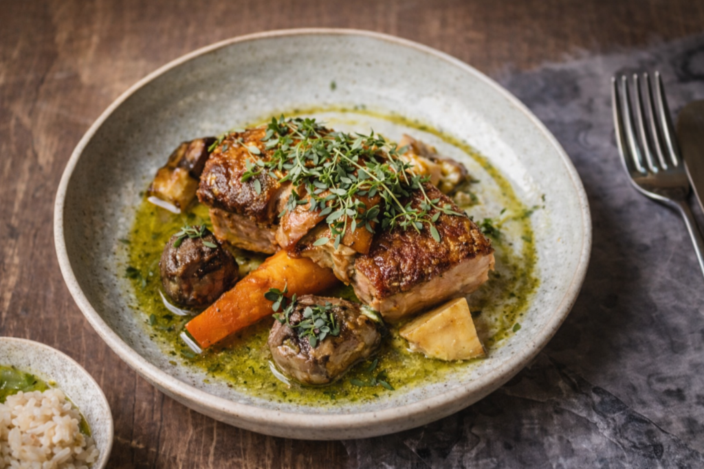 Une cuisine de saison, issue de circuits courts, dans un lieu intimiste avec cour privative, qui allie gastronomie, convivialité et engagement écologique, sans compromis !